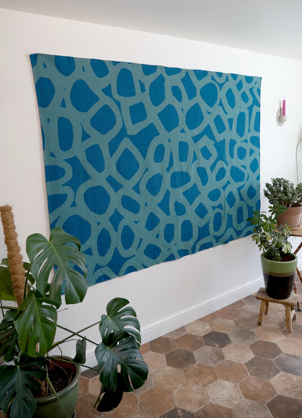 Our textiles can be used as striking wall tapestries. Click here to see how easy it is to hang yours and transform your space.