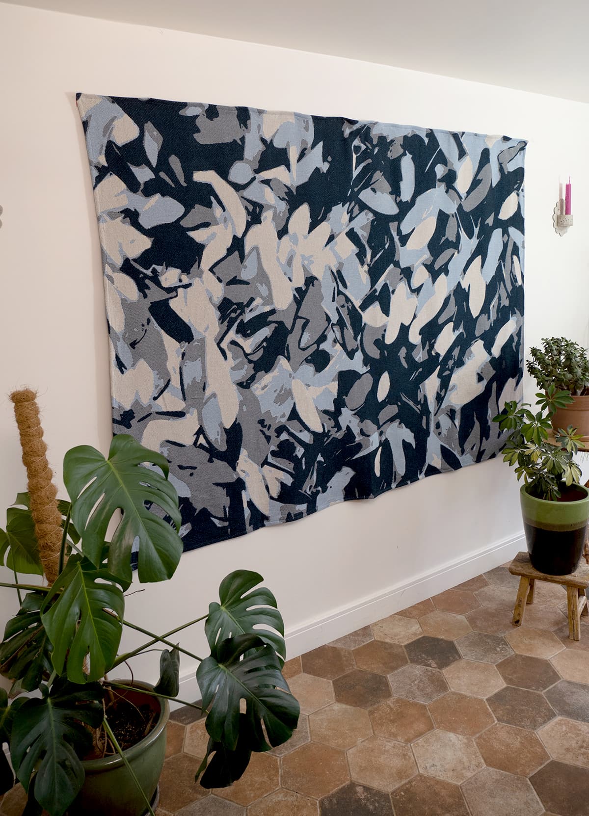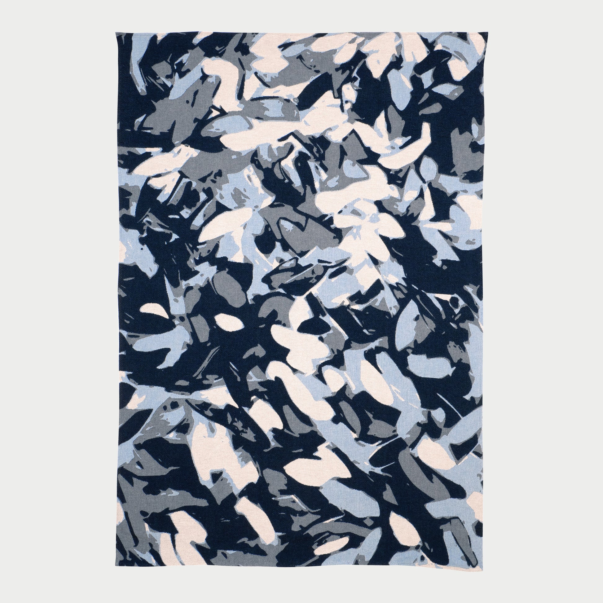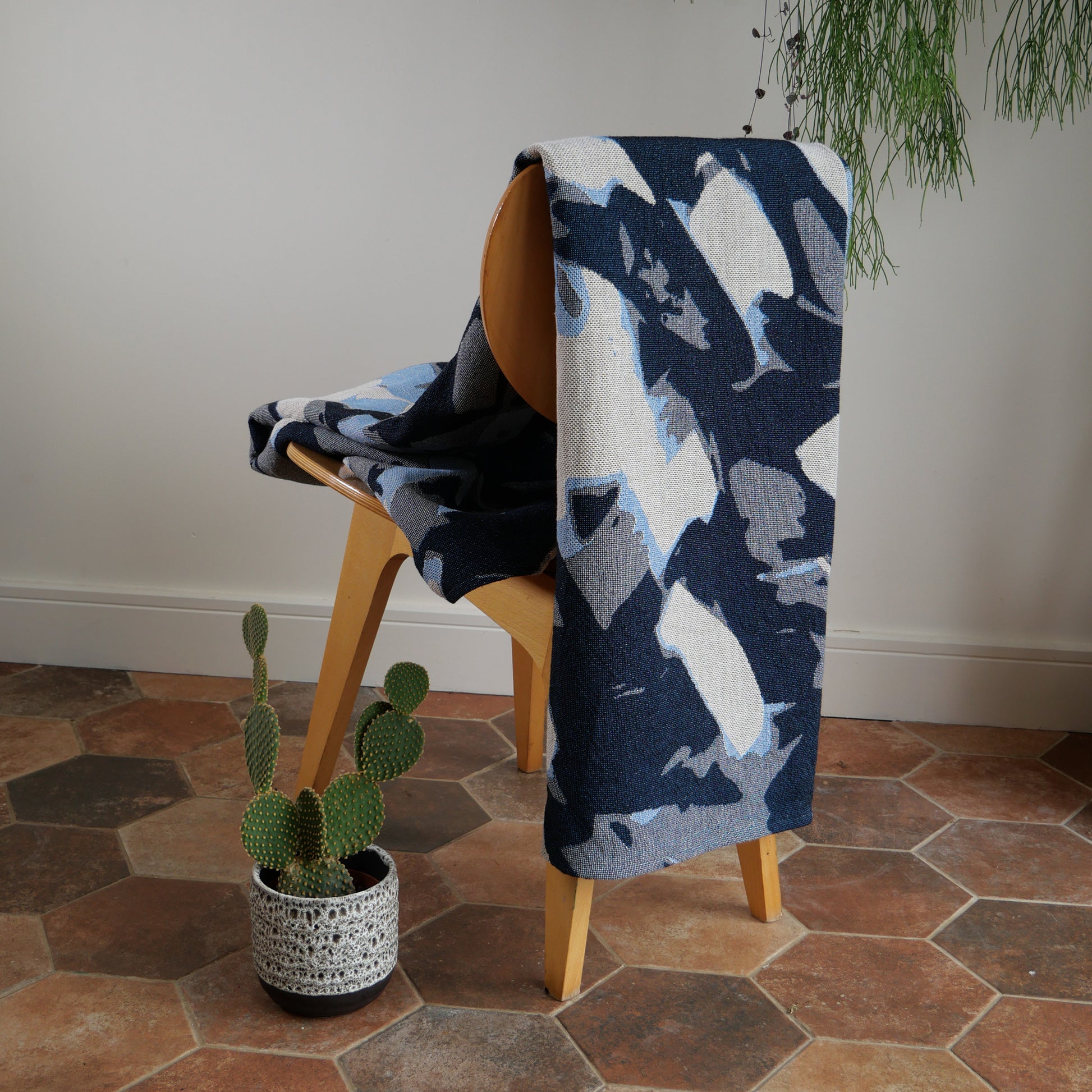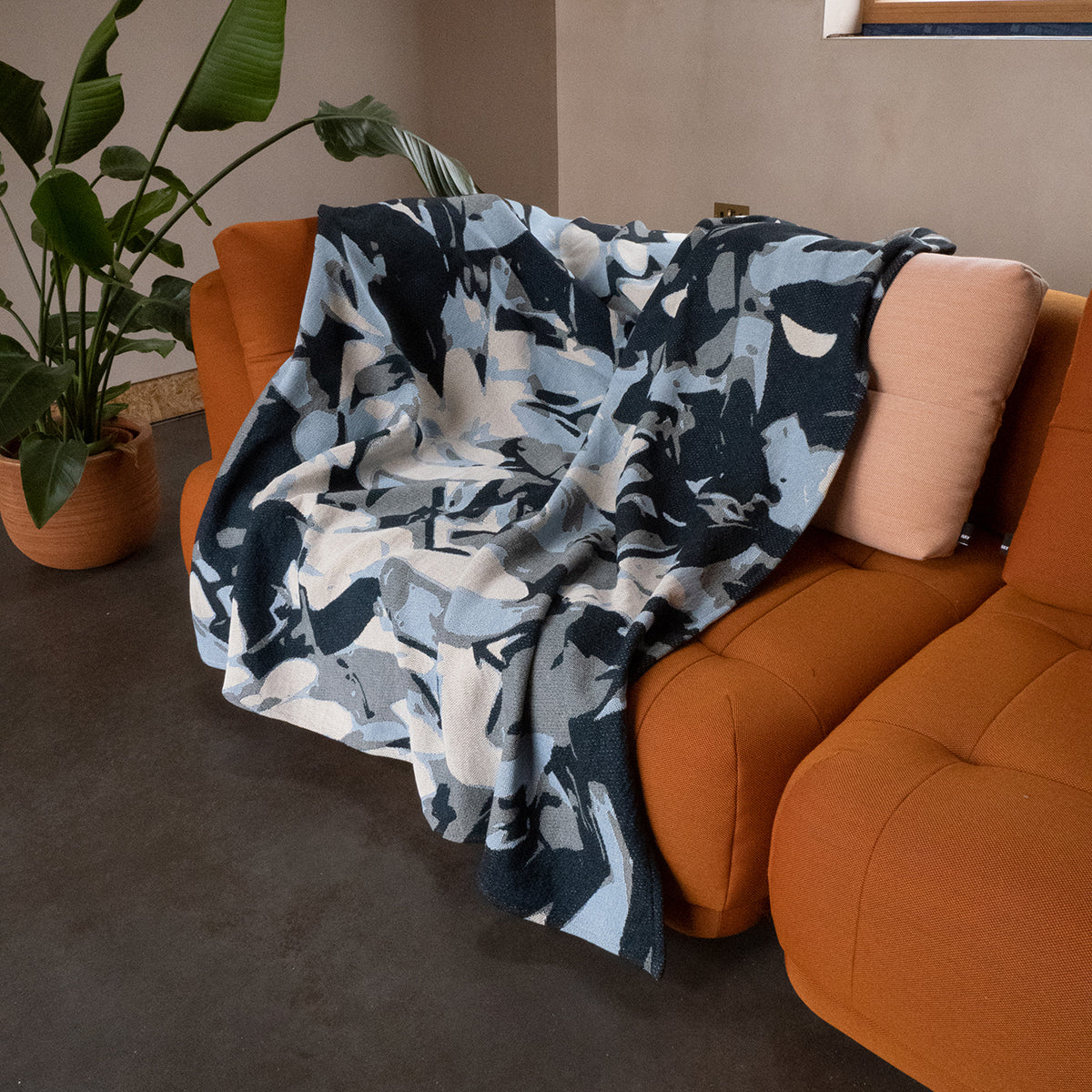 The Litter blanket is an abstract representation of the foliage that falls and covers the forest floor, reimagined in tones of blue and white.