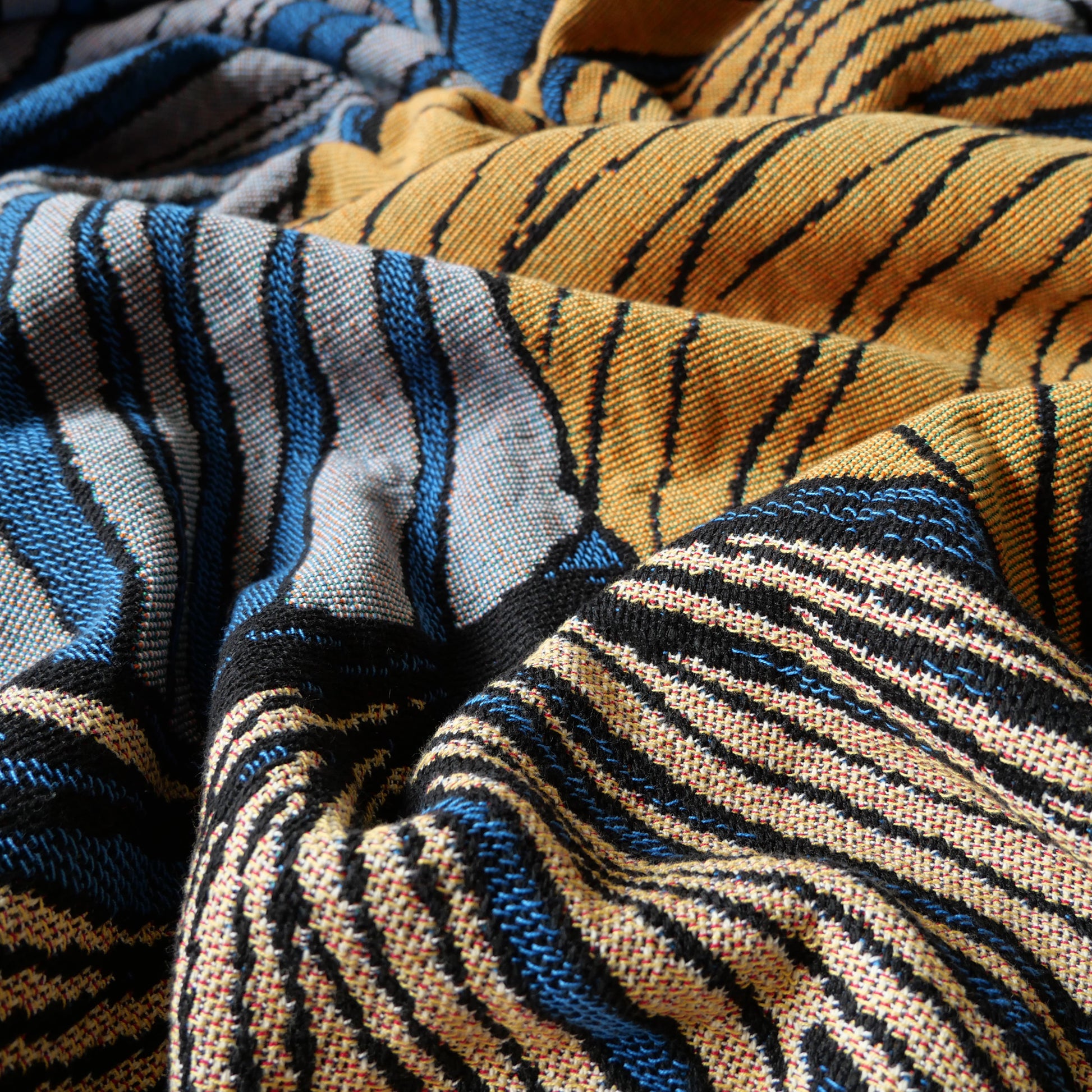 These woven blankets are designed to be used and enjoyed - drape them over a sofa, lay them across a bed, take them out for a picnic, or hang them on the wall as a work of bold textile art.
