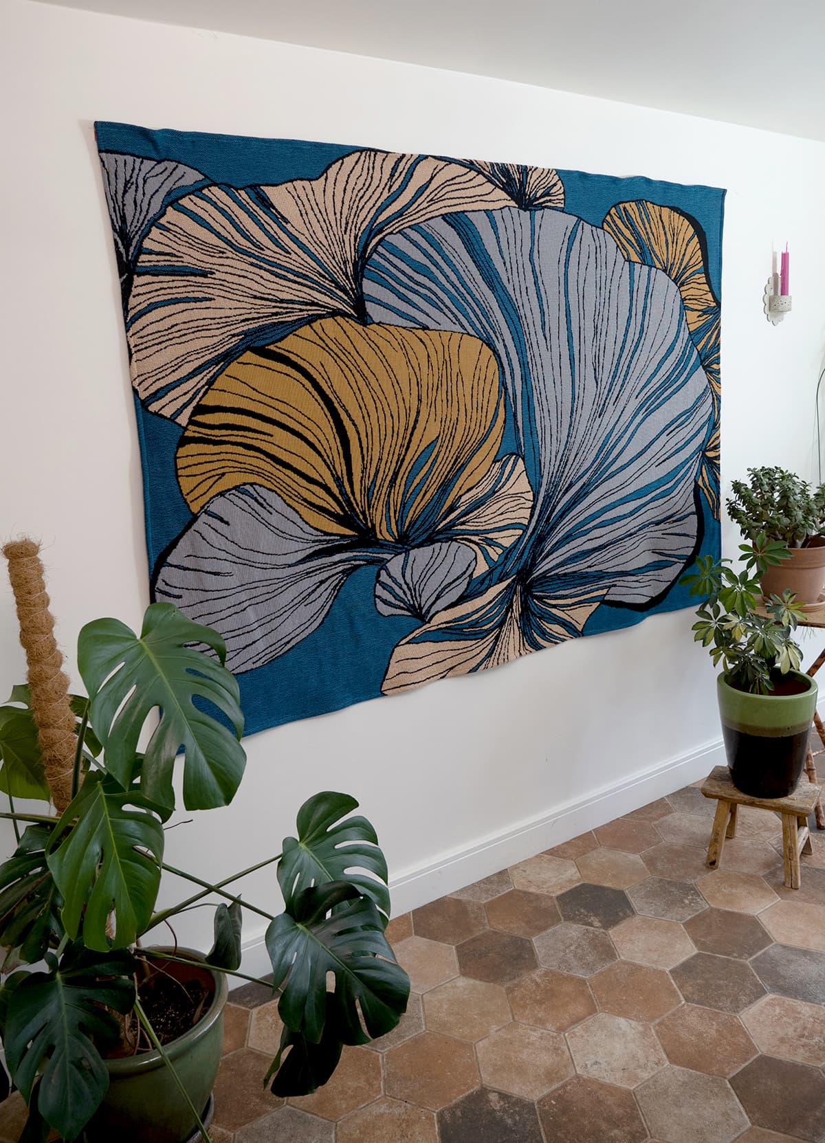 Our textiles can be used as striking wall tapestries. Click here to see how easy it is to hang yours and transform your space.
